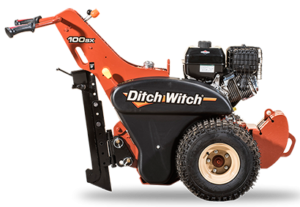 The Ditch Witch 100SX vibratory plow has high-flotation tires that provide the